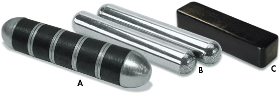 Alnico 5 Cow Pill - A favorite of Dairymen and Vets for over 30 years! B. Part No. COW-CP5 - Each measures 1/2 dia. x 3 long Price: $8.95 / pc Ceramic Cow Magnet C. Part No. SCM-7 - Measures 1/2 x 3/4 x 2-3/4 long Price:$1.72 / pc |