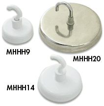 These powerful magnetic assemblies with attached hooks can lift from 9 lbs. to 20 lbs. in a vertical test. Use them to hang a shop light from the inside of a car hood or metal beam. Hang tools, keys or kitchen utensils from metal doors, refrigerators, filing cabinets or any ferrous metal surface. Their range of shop, household, office or point-of-purchase uses are nearly unlimited.
