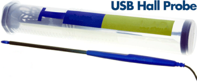 The USB Hall Probe represents a unique approach to magnetic field measurement, replacing traditional gaussmeter/teslameter hardware with a real-time USB software interface that integrates seamlessly with standard PC hardware. The USB Hall Probe uses Hall Effect sensing to measure magnetic flux densities, while the USB software toolkit replaces traditional gaussmeter display features by providing enhanced graph visualization and data logging support, all in real-time at a high display sampling rate. The unique USB software functionality is an effective, low-cost alternative to expensive gaussmeter hardware, extending measurement possibilities by supporting both static and dynamic magnetic field measurement tasks. |