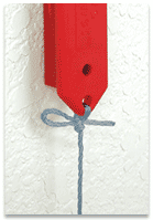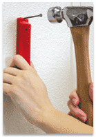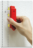 The magnet holds itself in place to mark the location. Use the notched end of the Stud MagnetT to set the nail. Attach a string with a small washer to the opposite end of the Stud MagnetT to create a plumb line for placing additional nails or screws in a straight line.